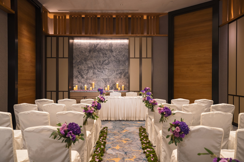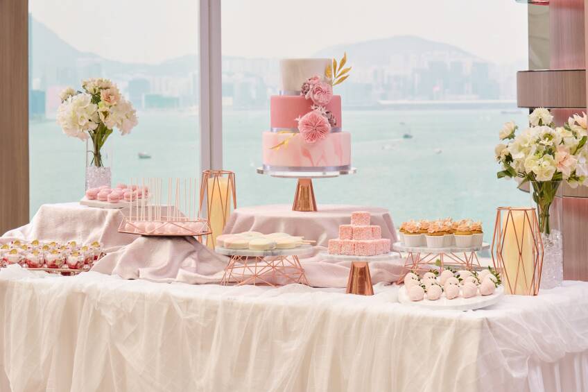 香港萬麗海景酒店宴會場地 — 美景閣及海景廳設於八樓,總面積超過1,300平方米。美景閣裝潢典雅高貴,設有玻璃天幕及巨型長窗,為宴會廳注入閃動醉人的光彩,並備有高品質視聽設施,可容納168位賓客,滿足新人一切婚嫁所需;瑰麗堂皇的海景廳採用無柱式設計,環境開揚寬敞,並配合華麗吊燈及多功能LED螢幕牆,好讓多達408位賓客共證兩口子的每個幸福瞬間,並獻上最真摰的祝福!此外,美景閣及海景廳還可合二為一舉行多達600人的盛大婚禮。婚嫁筵席由屢獲殊榮的滿福樓廚師團隊打造,一道道細緻的婚宴佳餚,與特別編寫的西式婚嫁菜譜,為婚慶典禮賦予難以言喻的「囍」悅滋味。另有優雅的會議室八及私密的萬麗套房供喜歡親密小型婚禮的新人互訂誓盟,開展難忘傾心的新章節。