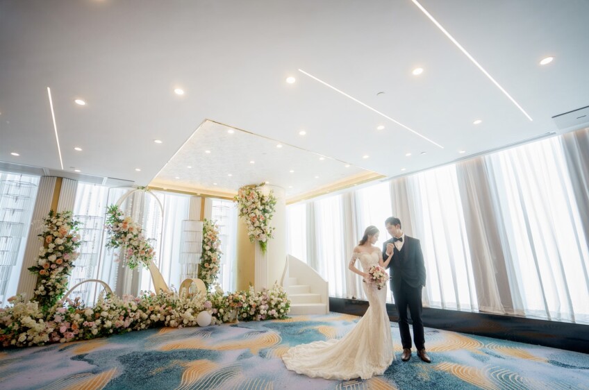 囍雲軒.HEYA的設計師更特意打造了兩大打卡場景: 「浪漫日光Daylight證婚區域」和「歐陸風純白小樓梯」,綴以精緻花藝裝飾,讓每場婚禮散發著極致的浪漫。