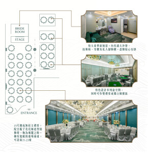 * 位處西九龍優越地段,連接港鐵站,貫通港九新界* * 特高樓底,墨綠色破格主調設計* * 國際認可註冊婚禮統籌師駐場* * 著名設計師打造歐陸式花園主題* * 全場筵開38席,宴會廳靈活多變.切合不同需要*