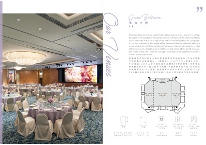每席HK$8,388起最高可設圍數80席 /最多可容納1500人無柱式宴會廳