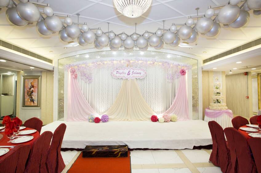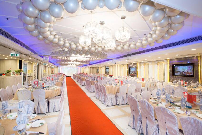 九龍灣百樂門國際宴會廳,採用新穎獨特的室內設計,裝潢精緻細膩,能筵開 75席,給人一種豪華時尚感,與幻變水晶燈拼湊出浪漫醉人的婚宴。