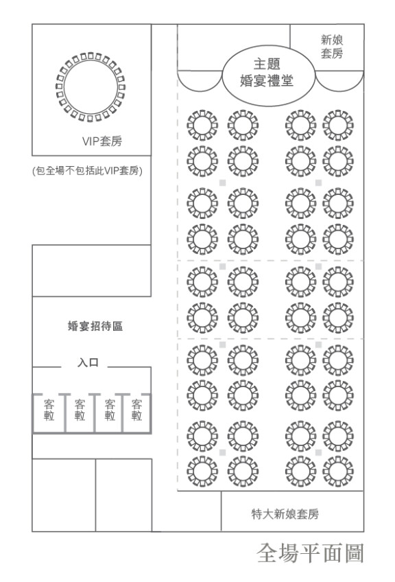 - •增設尊貴新郎房及奶奶房,體貼照顧婚禮中重要人物的需求。