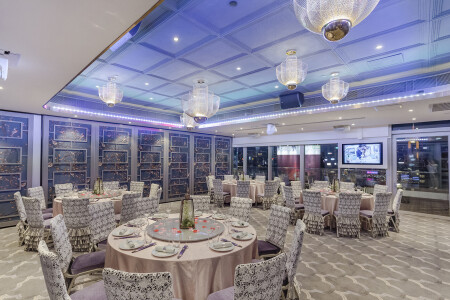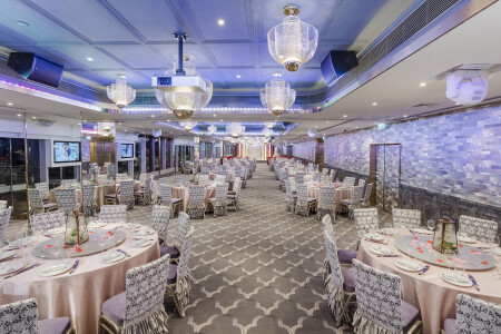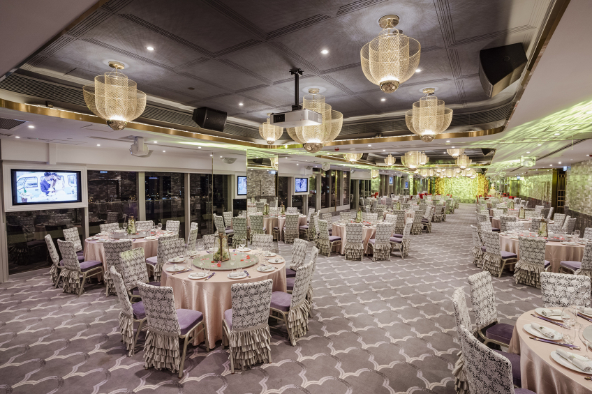 九龍灣百樂門國際宴會廳,採用新穎獨特的室內設計,裝潢精緻細膩,能筵開 75席,給人一種豪華時尚感,與幻變水晶燈拼湊出浪漫醉人的婚宴。