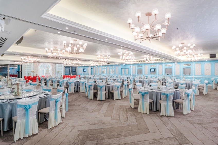 九龍灣百樂門國際宴會廳,採用新穎獨特的室內設計,裝潢精緻細膩,能筵開 75席,給人一種豪華時尚感,與幻變水晶燈拼湊出浪漫醉人的婚宴。