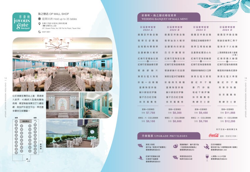 - •場地配備投影機、電視設備、舞台燈光效果、獨立音響設備及現場舞台等,並提供麻雀娛樂及新娘房、專用洗手間等貼心服務。