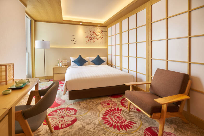 - •提供「環遊世界」主題住宿體驗,設有430間客房,裝飾風格多樣,包括非洲、日本、泰國、希臘等,打造異國情調之旅。