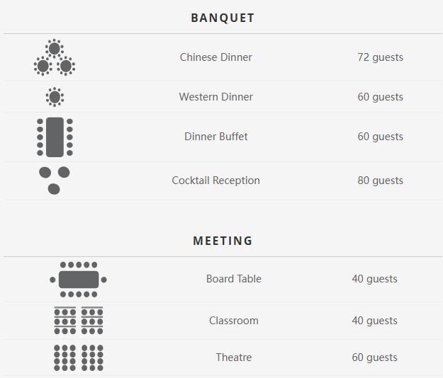 - •宴會廳最多可容納72位賓客,適合舉辦小型婚宴。