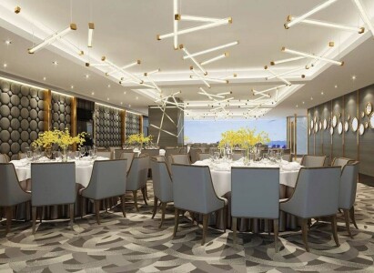 - •宴會廳設計融合傳統與現代風格,以金、灰、白色為主色調,營造喜慶優雅氛圍。