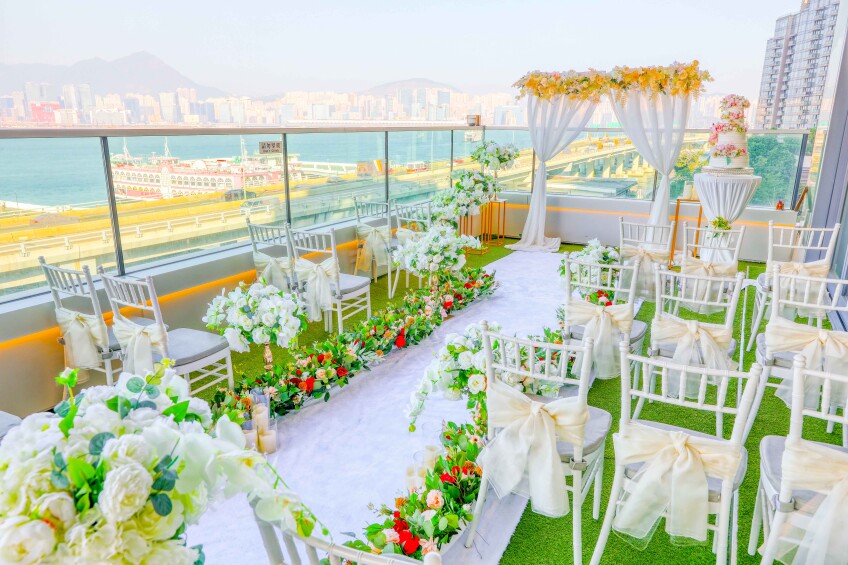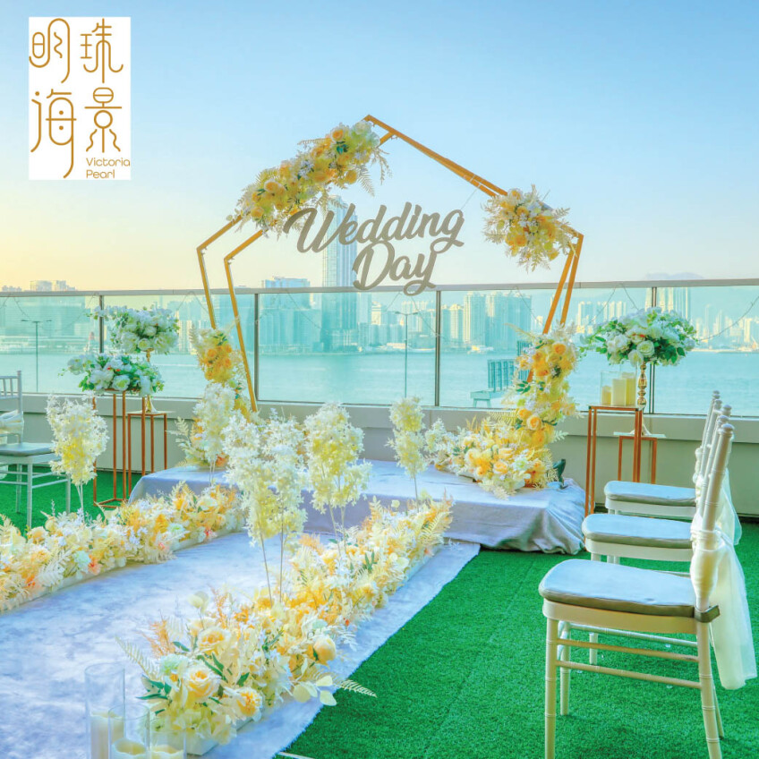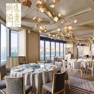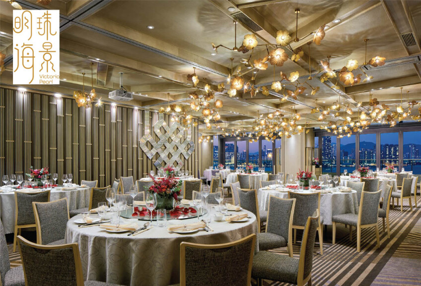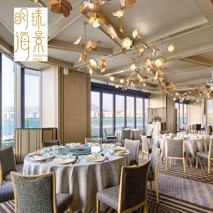 明珠海景位處北角的香港維港凱悅尚萃酒店北角匯一期5樓,坐擁180度維港美景,廣闊的空間配上時尚的裝潢,氣派華貴,感覺明亮新鮮,再加上由經驗大廚設計的中式美饌,一定能為賓客打造令人難忘的回億。 明珠海景佔地超過3千500呎,更有飽覽180度維港美景的露天平台,天然日光為場地帶來自然舒適的氣氛,令人完全放鬆, 明珠海景可宴開19席,盡覽維港景觀的露天平台可容納30人,最適合作小型證婚,讓賓客可以在美景前見證重要的時刻。明珠海景亦特別打造出4款酒席套餐,菜餚用料新鮮名貴,海鮮及海味菜式特別出色,亦確保其他菜式一定色香味俱全。