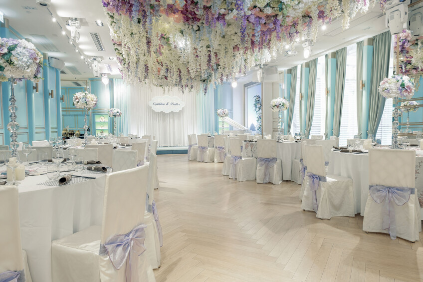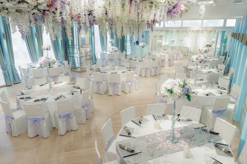 SKY88是尖沙咀熱門婚宴場地,以浪漫Tiffany Blue作為場地主色,搭配花卉長廊佈置,march-in時刻更加唯美幸福,彷如置身在鬧市中的秘密花園。無柱式設計的宴會廳,令新人和賓客間更加親密,十分適合舉辦小型證婚或輕婚禮。戶外更設有空中花園證婚區,推薦新人進行戶外證婚行禮儀式,在蔚藍晴天下向最愛許下終身承諾。場地適合新人舉辦60-100人的輕婚禮,亦可容納210人的小型證婚婚宴。SKY88位於豪宅名鑄、凱悅酒店坐落的K11 Art Mall內,交通四通八達,婚宴價錢每席$6888起。立即查詢,預約實地睇場。