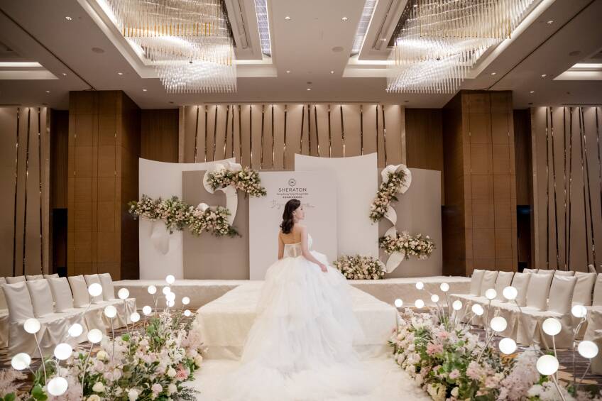 香港東涌世茂喜來登酒店以極大的無柱式婚禮場地、180度海景、戶外園林美景以及全新時尚裝潢,為一眾新人及賓客帶來婚禮新視覺。
