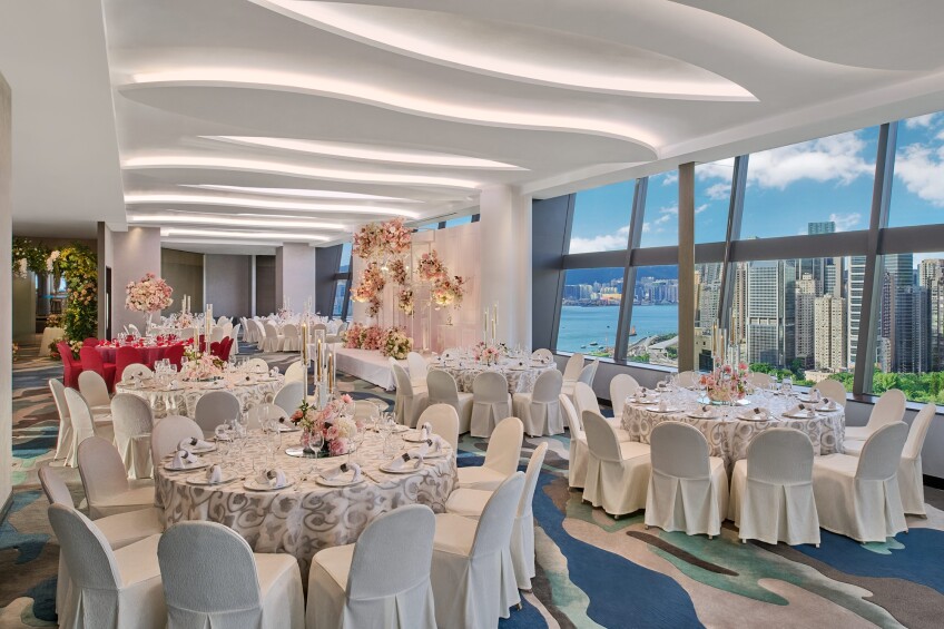 萬豪國際旗下的柏寧酒店位於銅鑼灣,是難得在市區擁有戶外空中花園、位於高層的婚宴場地。酒店擁有3個不同大小的婚宴場地,採用無柱建築及落地玻璃設計,新人可於維港壯麗海景下舉行戶外證婚儀式、小型典雅輕婚禮及夢幻奢華中大型婚宴,再加上優雅寬敞的客房,由出門至設宴,也有專業婚宴策劃團隊為您一站式籌備,度身訂造最貼心的浪漫婚禮。
