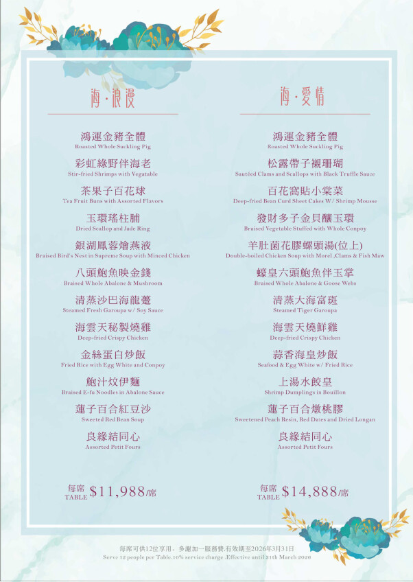 每席港幣 $10,988起