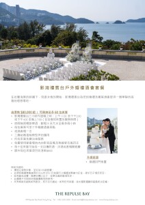 在您結婚的大喜之日,就讓我們為您實現夢想的婚禮。淺水灣影灣園擁有得天獨厚的迷人景致,一對新人可以在綠茵草坪或影灣禮賓台舉行戶外婚禮,讓一望無際的藍天碧海見證彼此間的山盟海誓,或於露台餐廳盡情享受浪漫的婚宴,接受來賓的祝福。如想舉行獨一無二的婚禮,我們經驗豐富的婚宴專家可為您量身設計與眾不同的香港露天婚宴套餐或其他體驗,無論場地裝飾、顏色布置、器材設置及宴客菜譜都可以根據您的心意設計,幸福甜蜜的生活,從淺水灣影灣園開始。