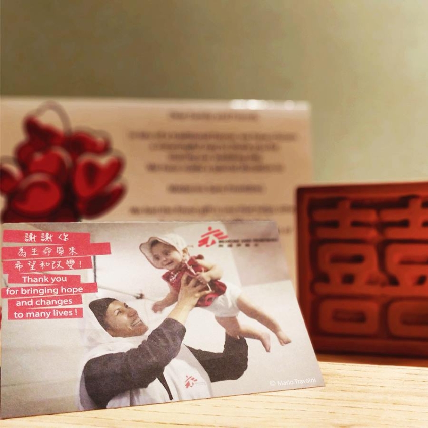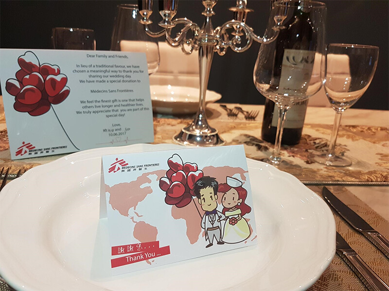 把婚宴回禮小禮物的預算捐予無國界醫生,支持無國界醫生提供緊急醫療援助,為傷病者的生命帶來改變。一對新人可選擇致送感謝咭給每一位賓客及自訂座檯咭內容把心意傳達。將祝福和希望分享給有需要的人,與無國界醫生一起救急扶危,比致送小禮物更有意義、更長久!