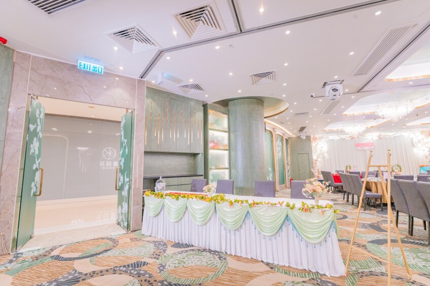 疊囍居位於奧海城3期,於2024年全新開業,宴會廳靈活多變,配以獨立出入口,適合大小不同宴會。場地全新裝修,採用清新的綠色配上金色框線點綴,為客人帶來耳目一新的效果。場內設有大禮堂及配備巨型LED高清大電視,為新人帶完美的婚宴體驗。