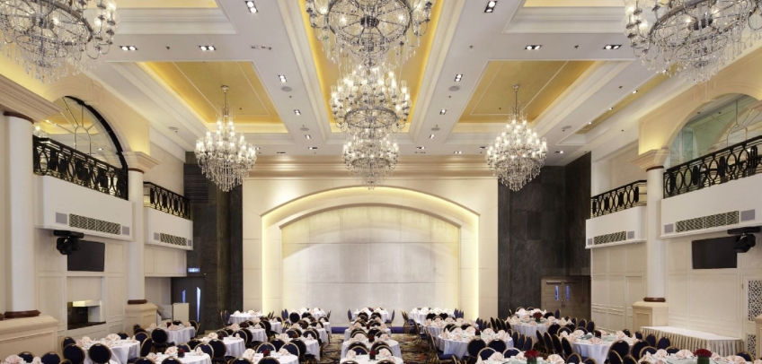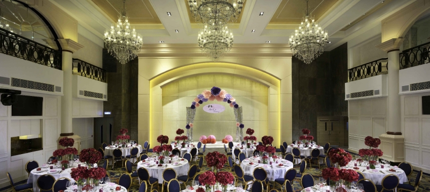 香港喜來登酒店的無柱式宴會廳及其他婚宴場地已於2025年年初全面完成翻新工程,以全新姿態為準新人打造完美無瑕的優雅婚宴。全新裝修的高樓底無柱式宴會廳以淺灰色、大地色及古銅色為主調,天花懸吊的螺旋形Swarovski LED水晶吊燈,氣派不凡;宴會廳配備了最先進的設備如內置LED 幕牆、液晶投影機和屏幕,是優雅浪漫囍宴的理想場地;而小巧雅致的唐廳、採自然光的宋廳及明廳以及其他靈巧高雅的宴會場地,即可舉辦私人雅致的輕婚宴或浪漫溫馨的證婚典禮,迎合不同準新人的需要。 酒店的囍宴菜譜均由屢獲殊榮、連續17年獲米芝蓮推薦及連續7年獲黑珍珠一鑽殊榮的天寶閣團隊主理,為婚宴匠心打造賞心悅味美饌。 香港喜來登酒店細意殷勤的宴會團隊,每年籌辦逾百場的大小婚宴筵席,為準新人締造非凡婚宴。酒店更設婚宴禮賓司,專門於大日子當日緊隨準新人左右,協調婚宴間的繁瑣細節,確保婚宴節奏順利流暢。