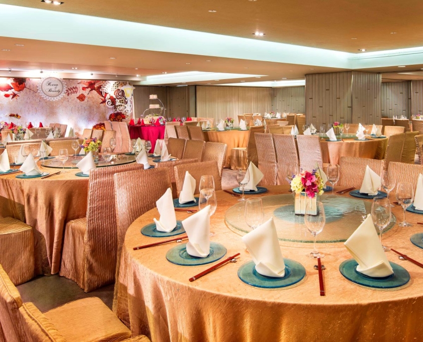 九龍灣百樂門國際宴會廳,採用新穎獨特的室內設計,裝潢精緻細膩,能筵開 75席,給人一種豪華時尚感,與幻變水晶燈拼湊出浪漫醉人的婚宴。