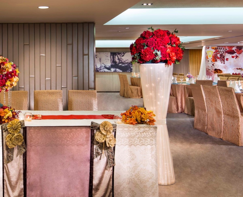 香港喜來登酒店的無柱式宴會廳及其他婚宴場地已於2025年年初全面完成翻新工程,以全新姿態為準新人打造完美無瑕的優雅婚宴。全新裝修的高樓底無柱式宴會廳以淺灰色、大地色及古銅色為主調,天花懸吊的螺旋形Swarovski LED水晶吊燈,氣派不凡;宴會廳配備了最先進的設備如內置LED 幕牆、液晶投影機和屏幕,是優雅浪漫囍宴的理想場地;而小巧雅致的唐廳、採自然光的宋廳及明廳以及其他靈巧高雅的宴會場地,即可舉辦私人雅致的輕婚宴或浪漫溫馨的證婚典禮,迎合不同準新人的需要。 酒店的囍宴菜譜均由屢獲殊榮、連續17年獲米芝蓮推薦及連續7年獲黑珍珠一鑽殊榮的天寶閣團隊主理,為婚宴匠心打造賞心悅味美饌。 香港喜來登酒店細意殷勤的宴會團隊,每年籌辦逾百場的大小婚宴筵席,為準新人締造非凡婚宴。酒店更設婚宴禮賓司,專門於大日子當日緊隨準新人左右,協調婚宴間的繁瑣細節,確保婚宴節奏順利流暢。