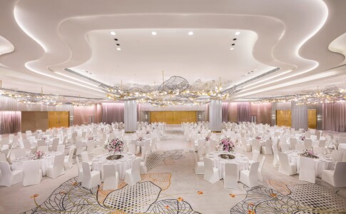 香港喜來登酒店的無柱式宴會廳及其他婚宴場地已於2025年年初全面完成翻新工程,以全新姿態為準新人打造完美無瑕的優雅婚宴。全新裝修的高樓底無柱式宴會廳以淺灰色、大地色及古銅色為主調,天花懸吊的螺旋形Swarovski LED水晶吊燈,氣派不凡;宴會廳配備了最先進的設備如內置LED 幕牆、液晶投影機和屏幕,是優雅浪漫囍宴的理想場地;而小巧雅致的唐廳、採自然光的宋廳及明廳以及其他靈巧高雅的宴會場地,即可舉辦私人雅致的輕婚宴或浪漫溫馨的證婚典禮,迎合不同準新人的需要。 酒店的囍宴菜譜均由屢獲殊榮、連續17年獲米芝蓮推薦及連續7年獲黑珍珠一鑽殊榮的天寶閣團隊主理,為婚宴匠心打造賞心悅味美饌。 香港喜來登酒店細意殷勤的宴會團隊,每年籌辦逾百場的大小婚宴筵席,為準新人締造非凡婚宴。酒店更設婚宴禮賓司,專門於大日子當日緊隨準新人左右,協調婚宴間的繁瑣細節,確保婚宴節奏順利流暢。