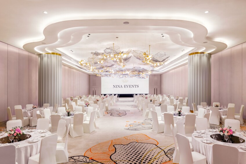 - •Nina Ballroom佔地逾1,672平方米,樓高宏偉,配備先進影音設施、巨型LED屏幕及可調校場景的天花燈飾,可容納多達1612位賓客或逾百席盛宴。