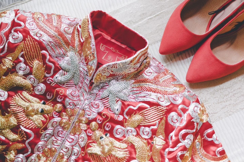 中國第一龍鳳褂品牌「褂皇」,自設廠房堅持純手工繡製自家裙褂。「褂皇」的矜貴在於全采用一針一綫手工潮繡的百年傳統工藝製作,匠心的執著承傳著愛,將如意吉祥與對新娘子的祝福繡在龍鳯褂上。選用最頂級的用料及繡線,並保持着以純真絲緞為底面,鍍金金綫,真銀絲綫打造!
