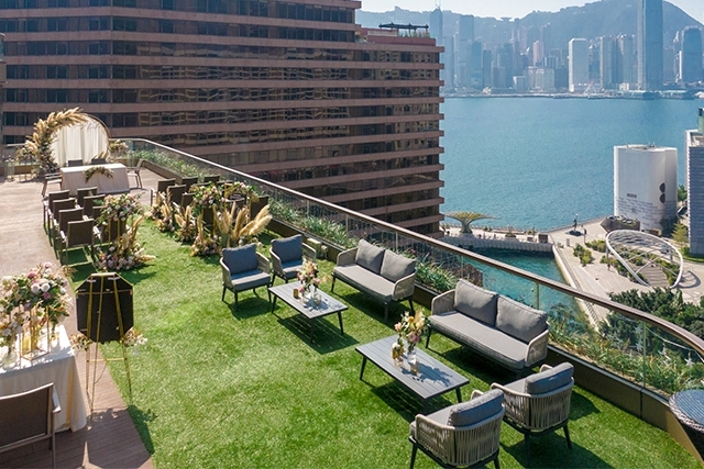「鏞鏞.藝嚐館」是老字號鏞記酒家旗下的首個年輕品牌,坐落於尖沙咀K11 MUSEA七樓空中花園旁,地理位置非常優越。餐廳擁有一個戶外小型證婚場地,其露天平台佔地2,000平方呎,與K11 MUSEA 空中花園連接,可一覽180度維多利亞港景色,藍天碧海,風光如畫,絕對是戶外小型證婚場地的首選。