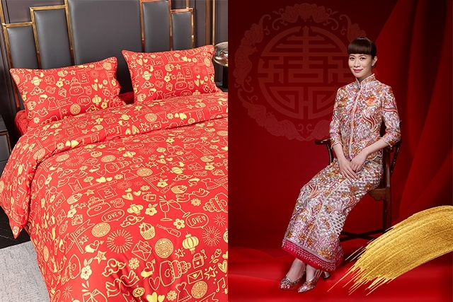 「床品寢具發明專家」雅芳婷為準新人提供優質舒適的床上用品,其婚慶系列床品以上佳全棉物料製作,透氣舒適,觸感柔軟,配以先進的染色工藝,色澤鮮艷亮麗不易褪色,絕對能帶來喜氣洋洋之意,為無數新人送上祝福。