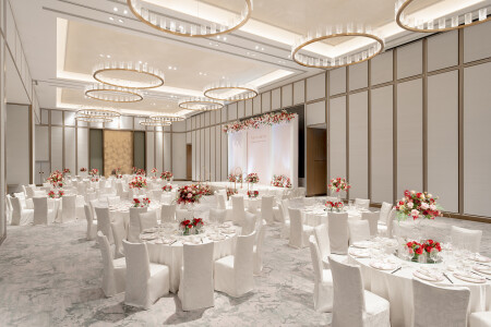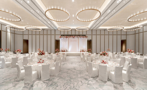 準新人可在設計典雅且無柱式的富麗敦宴會廳喜結連理,更可使用其海景前廳迎賓,場地可容納最多 28 張圓桌。宴會廳配備一系列先進的音響器材,更設有大型高清 LED 多功能螢幕牆,定能為準新人打造一段最珍貴難忘的甜蜜回憶。