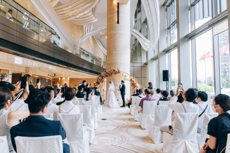 寬敞的迎賓區擁有自然採光,面積達204平方米,為賓客帶來愉悅的進入體驗,讓每一個喜悅的瞬間都能輕鬆捕捉。大堂酒廊及戶外園林區更是證婚儀式及輕婚禮的理想選擇,營造出清新唯美的氛圍,讓您沉醉於賓客的祝福中,與摯愛親朋分享這份溫馨的美好。