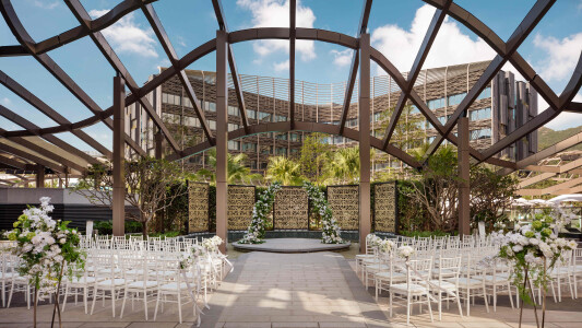 喜歡戶外的您,不妨考慮舉辦一場被蔚藍天空和翠綠山巒環抱的婚禮。戶外園林婚宴花園面積約208平方米,可容納80位賓客就座; 親友可於一望無際的藍天下見證浪漫感人的一刻, 這裡還是寵物友善的證婚場地,讓最愛的毛小孩可參與您的人生大日子。