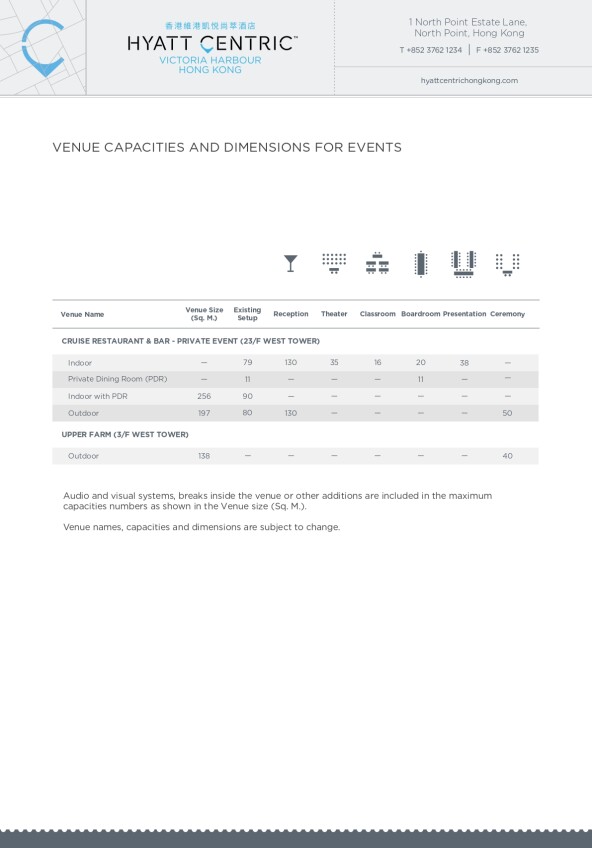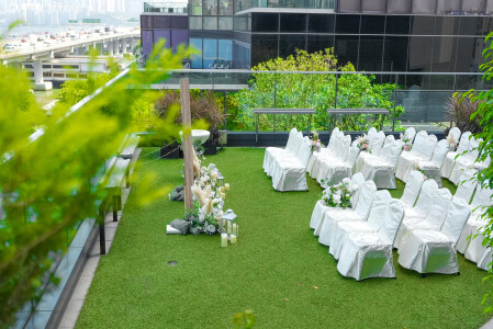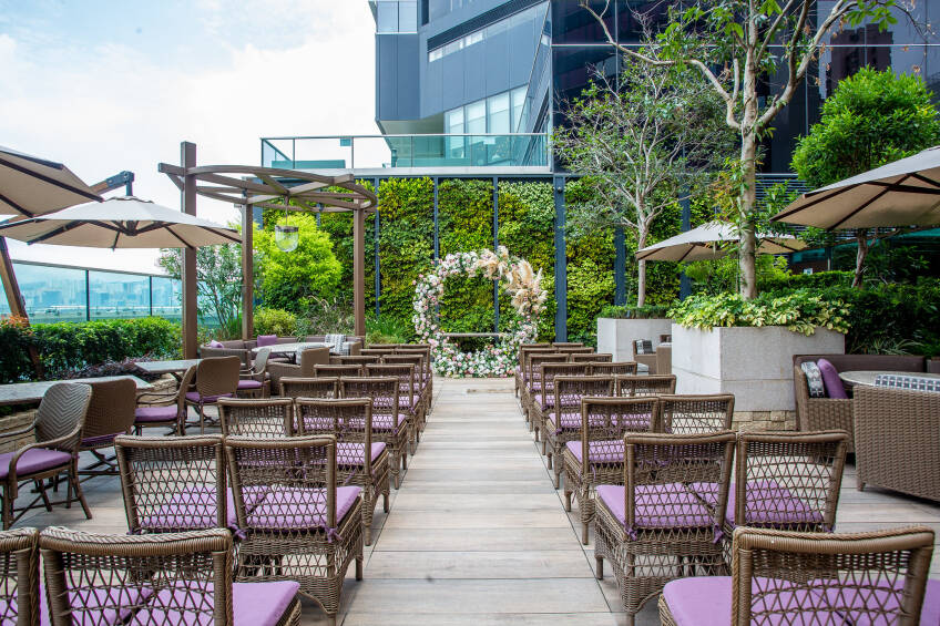 酒店提供完善設備的戶外宴會場所,其中The Farmhouse咖啡廳的戶外露台面向維多利亞港,是舉辦小型戶外婚禮的完美場所。另一個享負盛名的婚宴場地Cruise空中餐廳及酒吧,位於酒店頂樓,俯瞰無邊際香港九龍景致,為您提供華麗夢幻的戶外宴會場景。您可訂下整個餐廳場地,婚宴可於The Farmhouse咖啡廳以自助餐形式進行或與Cruise空中餐廳及酒吧以特色美饌款待客人。