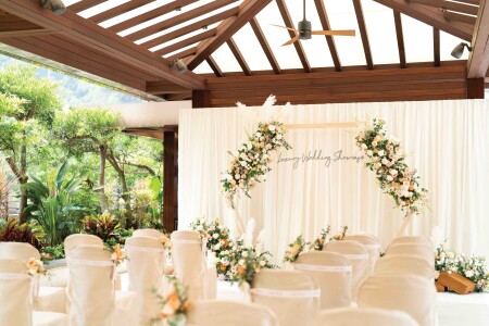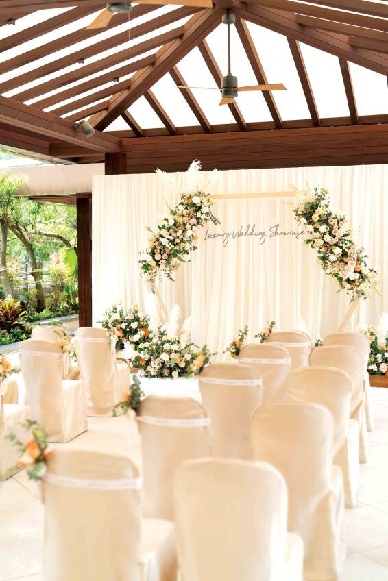 此外,綠意盎然的戶外池畔酒廊,位於酒店7樓,面積超過 1,300 平方呎(124平方米),擁有翠綠優美的山巒景色,可舉行容納70人的雞尾酒會或證婚儀式,在親朋好友的陪伴中許下誓言。