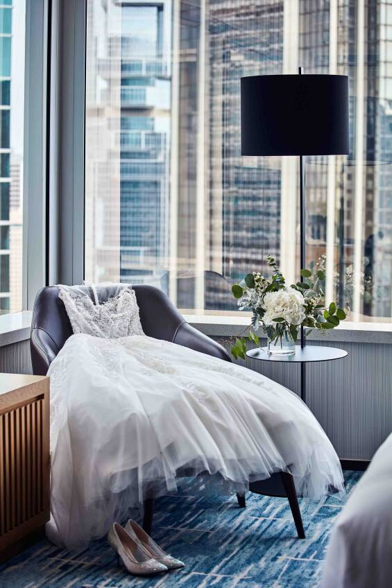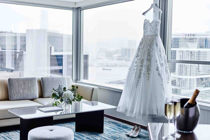 位於 34 及 35 樓的豪華寬敞的總統套房,設計為市內罕見的複式套房,裝潢佈置優雅高貴,盡顯氣派,高樓底間隔營造舒適空間感,更可由連接上下兩層的特色樓梯進場,締造與別不同的證婚儀式。