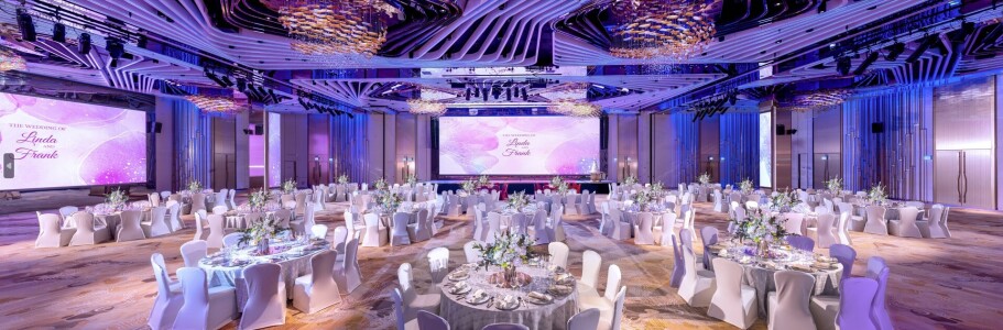 麗豪航天城酒店提供夢想的婚禮服務,由囍宴安排、場地佈置、新娘婚紗、花卉擺設、轎車租賃以至蜜月套房等,我們的婚宴策劃團隊都能一一悉心照料,致力為婚禮主角締造永誌難忘的體驗!宴會場地面積超過2,800平方米,擁6.7米高樓底設計,場內均配置最先進的視聽影音及燈光設備配套,包括音訊與視頻輸出同步系統、6個LED電視牆及6個LED垂直顯示版等。