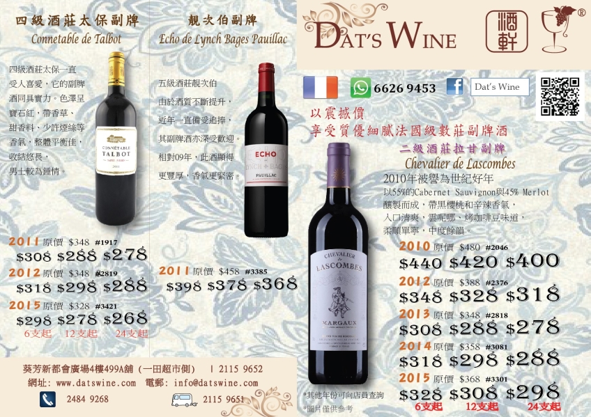 DAT'S WINE 酒軒成立於2008年,在香港專營葡萄酒進口、批發及零售。 DAT'S WINE 取自 "That's Why" 之諧音,又有 "That's wine"、"Dating wine"、"Daily wine"之含意,這亦正是DAT'S WINE 酒軒多年來發展的路線。 希望可以將葡萄酒類產品在香港普及化,令葡萄酒類產品成為無論任何場合都適用的飲料。作為葡萄酒入口商及代理商,DAT'S WINE 酒軒會繼續進口一些價格低廉物美及性價比高的美酒與眾同樂。作為葡萄酒零售商,希望透過教育及分享,好使葡萄酒類產品在香港普及。因為我們相信 "Wine Connects People",葡萄酒能令人與人之間的關係更緊密,社會更加和諧。