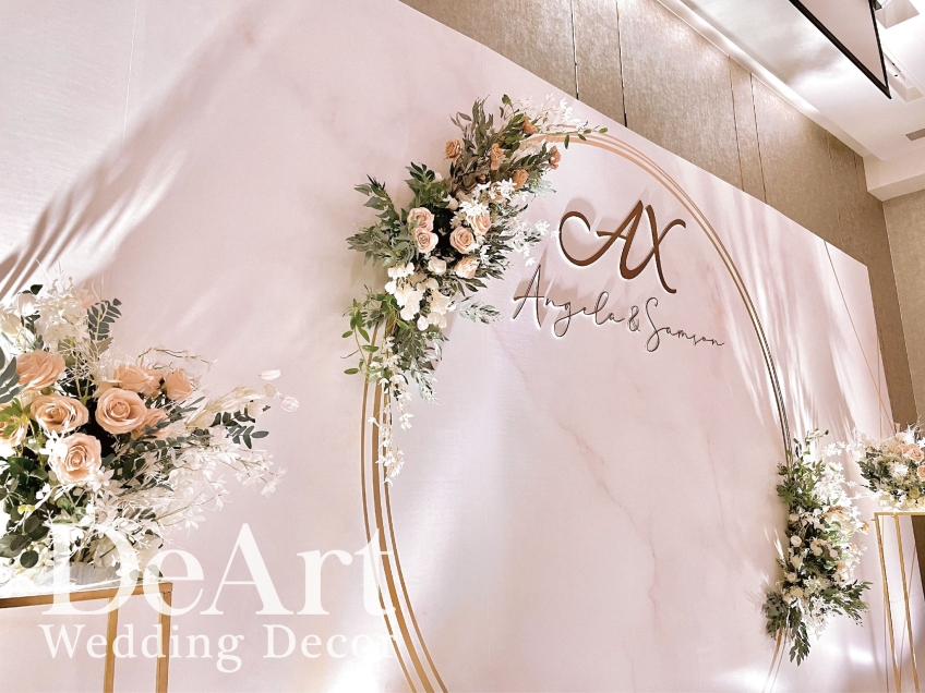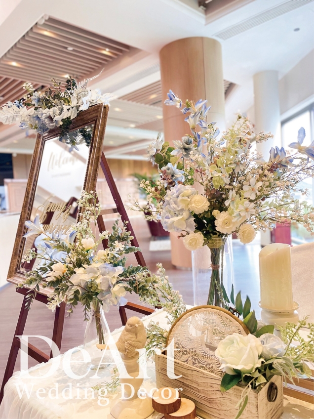 為配合不同婚宴場合的需要,我們設有多款不同的場地佈置以供選擇,還可為你提供個人化的設計。產品包括(新人名牌 /禮堂Backdrop/ 迎賓牌 / 來賓簽名布/結婚喜帖)