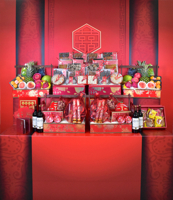 Gift Hampers HK是香港第一的網上禮籃專門店, 提供各色各樣禮籃,當中過大禮禮籃有多達15款,內含多款海味、時令水果、中式嫁女囍餅及利是封,還貼心提供素食選擇與上門送貨服務,保證一對新人能在大日子得到最美滿的祝福。