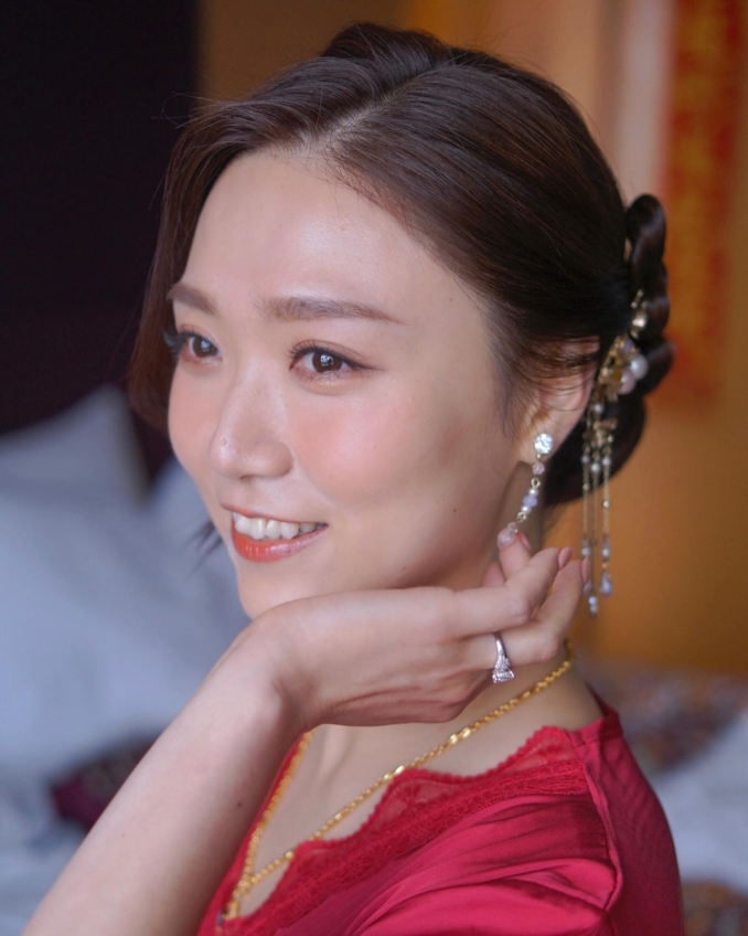 化妝髮型風格簡約自然,會因應新娘本身個性、特質、輪廓優點去考慮,不會隨波逐。