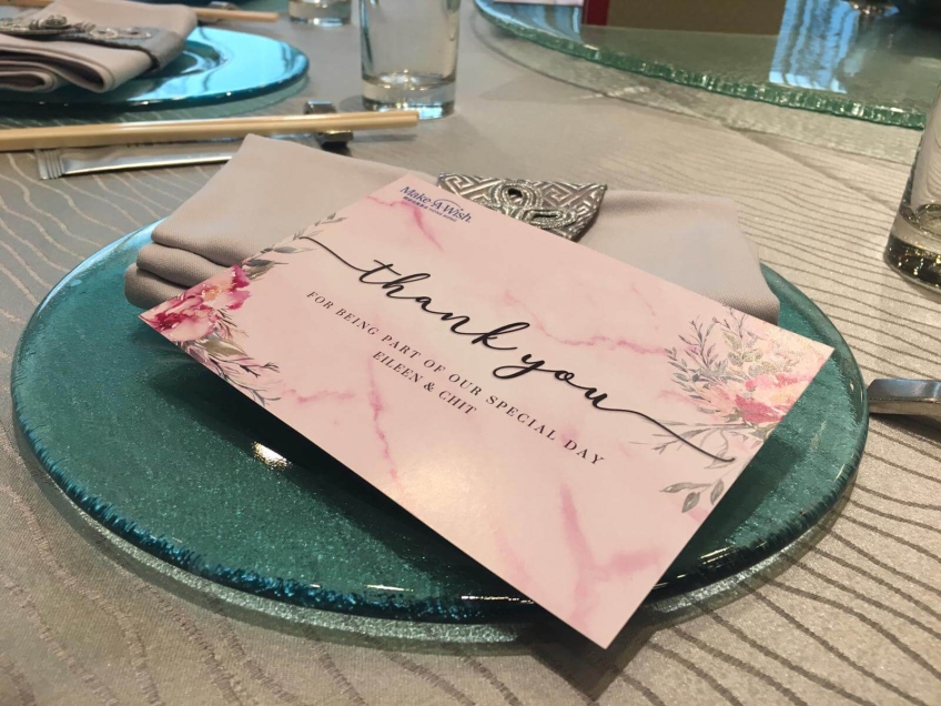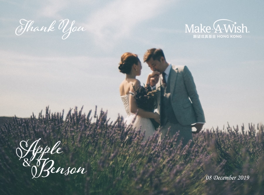 將婚宴回禮小禮物的預算捐予願望成真基金,令你的婚禮更多添一重意義!我們會特別為你預備精美心意卡致送給眾賓客,讓他們一同分享助人的喜悅。