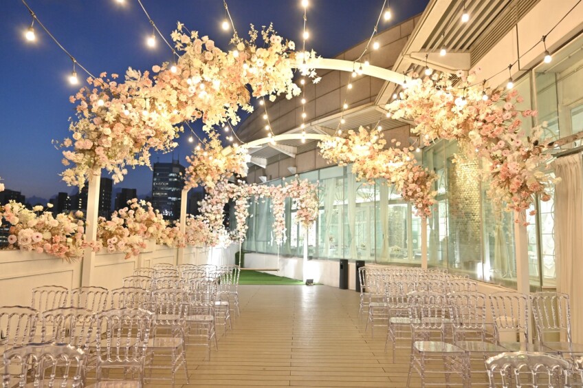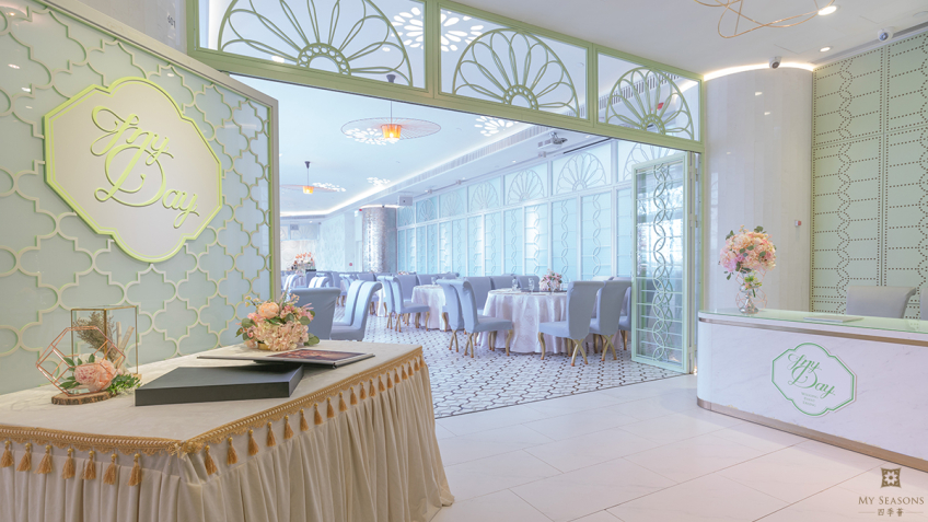位於尖沙咀美麗華商場6樓,場地以蒂芙尼藍色打造英倫童話般的夢幻風格;室外設有戶外證婚花園,翠綠色窗框配襯著明淨透亮玻璃窗,感覺舒爽清新。 MY DAY,It’s Your Day,成就您的傳奇婚禮。