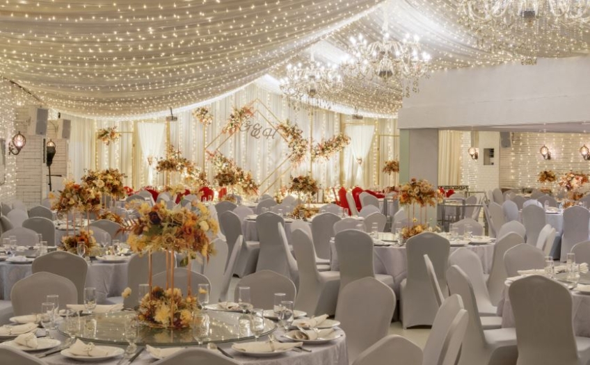九龍灣百樂門國際宴會廳,採用新穎獨特的室內設計,裝潢精緻細膩,能筵開 75席,給人一種豪華時尚感,與幻變水晶燈拼湊出浪漫醉人的婚宴。