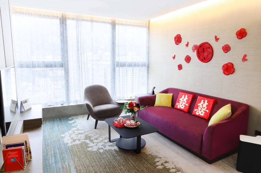 - •客房空間充裕,極適合進行新郎玩遊戲、接新娘儀式及婚照攝影。
