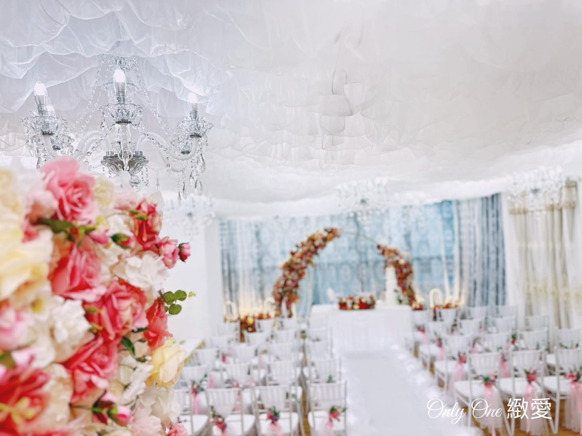 Only One可容納60-80人,我們提供專業婚禮服務,可以彈性選擇證婚套餐或一站式婚禮服務