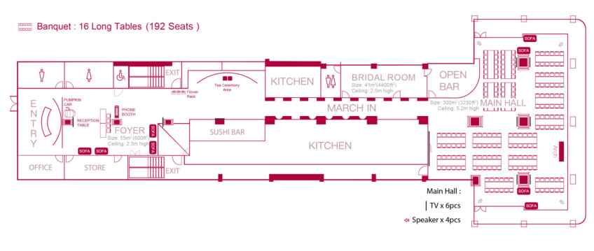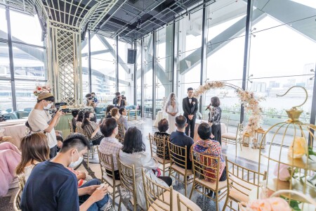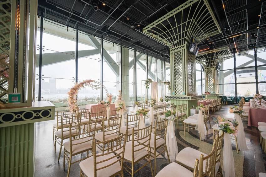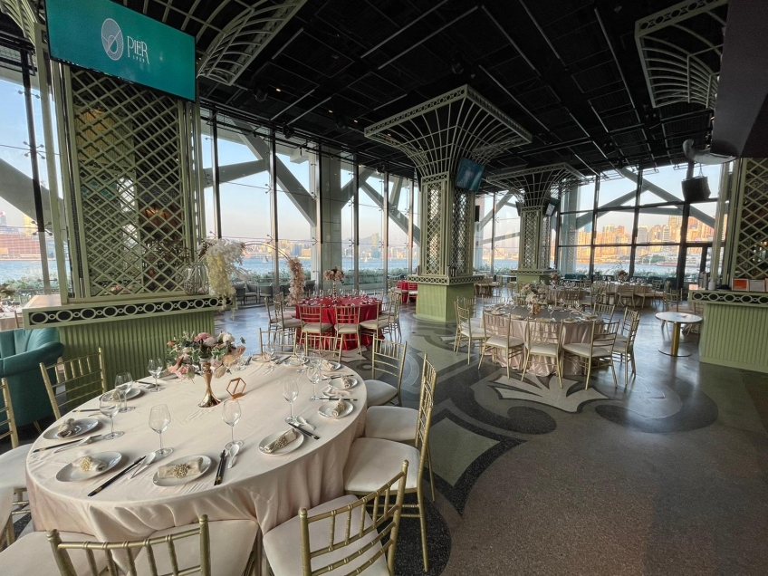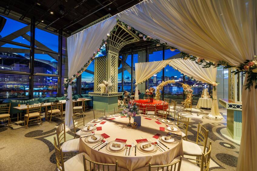 Pier 1929,位於灣仔碼頭,前身為築地‧山貴水產市場。坐擁270度環迴維港,讓新人和賓客能夠近距離欣賞絕美景致,無論是舉辦午間婚宴,還是晚間婚宴,窗外景色同樣旖旎,令人心醉。Pier 1929婚宴場地超過3千尺,樓底特高達5.2米,空間十分寬敞,可容納約160人晚宴或400人雞尾酒會。