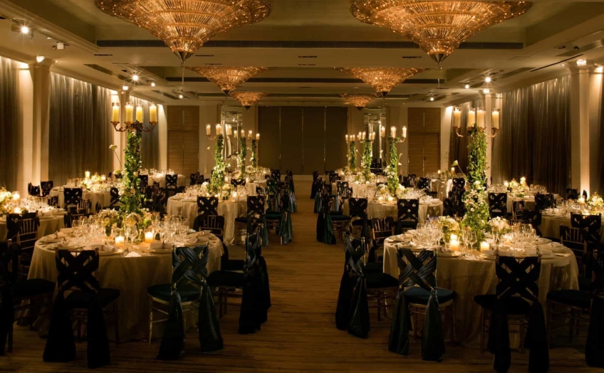 結合時尚潮流,講究優雅氣氛,俯瞰九龍公園的The Mira Hong Kong宴會廳,佔地逾一萬平方尺,寬敞無柱的場地,可容納多至五十席,是全港市中心面積最大的酒店宴會廳之一,並邀請品味大師Colin Cowie®擔任創作總監,令宴會廳更添原創品味。宴會廳可同時提供六種不同的主題色調,配合鮮花、柔和燈光和度身訂造的擺設, 備有獨特的水晶燈,以及智能燈光系統, 定能為新人打造獨一無二的婚禮。