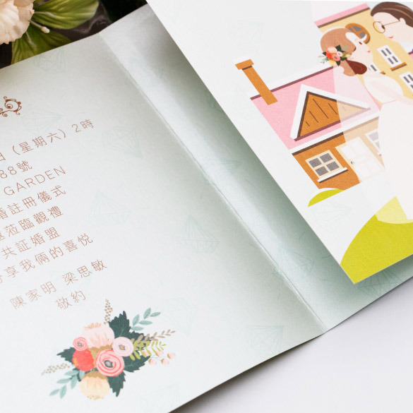 - •喜帖價格方面,100張淨帖約港幣170元起,連禮封套裝則約港幣260元起,並提供加立體燙工/UV服務。