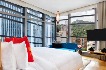 - •客房設計靈感源自灣仔文化,寬敞舒適並配備落地窗,部分套房更享270度城市全景。