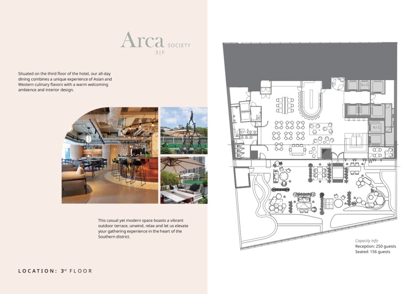 雅格酒店一共有三個場地 — Arca Sky、Arca Assembly 及 Arca Society,無論是豪華盛大的西式婚宴,温馨浪漫的輕婚禮或獨特難忘的酒店證婚證婚儀式,雅格酒店的宴會團隊致力助您策劃美滿婚宴,並貼心提供婚宴酒席套餐及酒店婚禮優惠,承諾為每對新人締造完美難忘的旅程!